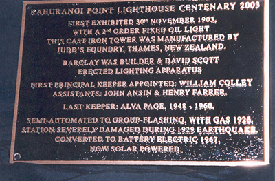 This plaque was installed by Paul W. Shirley on the base of the tower during the NZ Maritime Safety Authority annual inspection in November 2003.