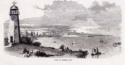 1855 illustration of the first (1828) Prince's Bay Lighthouse from "Ballou's Pictorial."