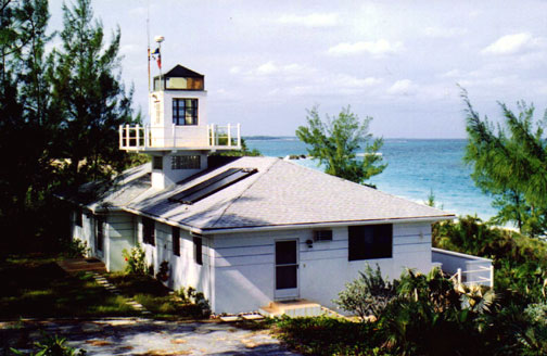Height of Focal Plane: 73 Characteristic and Range: Fixed white light with a more intense flash every 5 seconds; range 18 nautical miles. Description of Tower: Square tower on top of house.