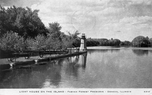 Notes: This lighthouse was built by Colonel George and Nelle Fabyan as part of an estate called "Riverbank." The light has never served as an official aid to navigation. Description of Tower: White octagonal tower.