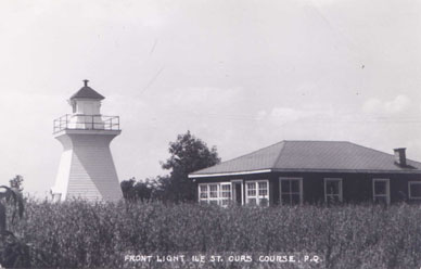 Notes: This range replaced the Ile Saint-Ours Traverse Range in 1928. The rear light was shown from a tall steel skeleton tower with white, wooden slatwork and a white watchroom at the top. Height of Focal Plane: 43 Characteristic and Range: Fixed white, range 4 miles. Description of Tower: White, square, pyramidal wooden tower.