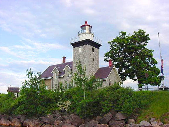 Notes: This lighthouse is today within Golden Hill State Park. The station is owned by the state; the Friends of Thirty Mile Point Lighthouse work for the restoration and preservation of the buildings. The lighthouse was reactivated as a private aid to navigation in 1998 after 39 years of inactivity. The fog signal building is now a recreation hall for campers in the park. Tower Height: 61 Height of Focal Plane: 71 Description of Tower: Unpainted, square limestone tower with white and red lantern, attached to keeper's house.