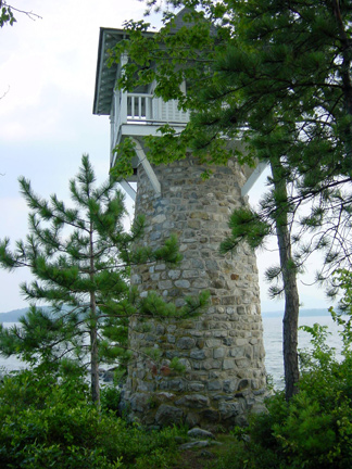 Description of Tower: Conical stone lighthouse with square roof and gallery.