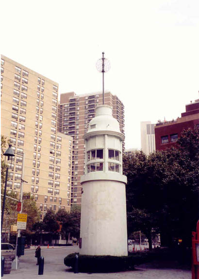 Tower Moved? 1976 Date Deactivated: 1967 Current Use: Attraction at museum. Open To Public? Grounds only. Museum? The lighthouse stands at the entrance to the South Street Seaport Museum. The museum's hours: April 1-Sept. 30: Daily 10 a.m. to 6 p.m.; Thurs. until 8 p.m. Oct. 1 - Mar. 31: Daily 10 a.m. to 5 p.m.; closed Tuesdays. Directions: From West Side: Take West St. southbound past World Trade Center. Follow signs to FDR Dr. Take underpass, keep right--use Exit 1 at end of underpass. Turn right on Soth St., six blocks. From the East side, take FDR Dr. south to Exit 3 onto South St. Proceed about one mile. Bu subway, take 2, 3, 4, 5, J, Z, or M to Fulton St.; A and C to Broadway-Nassau; E to World Trade Center. Walk east on Fulton St. to Water St.