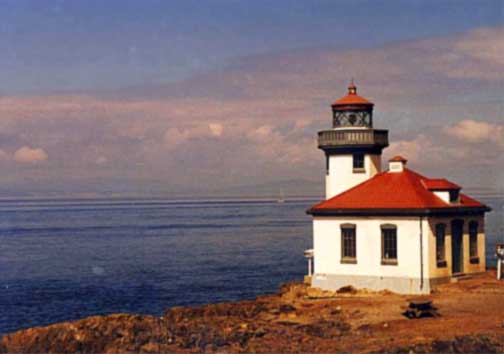 Other Buildings? 1914 1.5 story keeper's house, integral concrete fog signal building, second keeper's house, three storage buildings. Date Established: 1914 Date Present Tower Built: 1919 Date Automated: 1962 Optics: Currently VRB-25 optic. Fog Signal: Automated horn. Current Use: Active aid to navigation, whale research station. Open To Public? Grounds open, tower open at times. Directions: This lighthouse is located in Lime Kiln Point State Park at at 6158 Lighthouse Road, Friday Harbor. There are picnic areas and a whale watching platform in the park. Lighthouse tours are offered in summer on Saturday evenings. Mapquest URL: Click here to get a map to this lighthouse! Listed on the