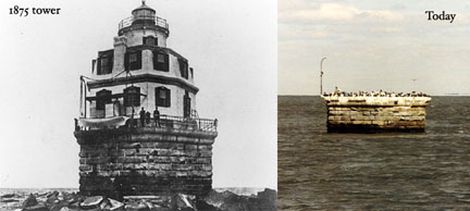 Notes: This lighthouse deteriorated after being discontinued in 1910, and it was destroyed by the Coast Guard in 1962. Description of Tower: Tower and lantern on top of three-story wood frame dwelling, on granite foundation.