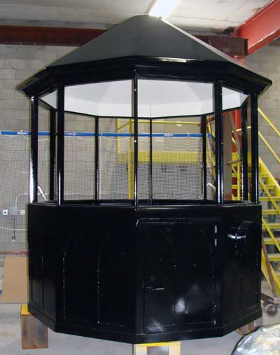The assembled replica lantern fabricated to the original plans by Moran Iron Works of Onaway, Michigan. The lantern will be hoisted onto a flatbed truck in late April and trucked to Mackinaw City where it will be lifted by crane to its new home atop the tower of the McGulpin Point lighthouse. Back to the edition of: May 2009