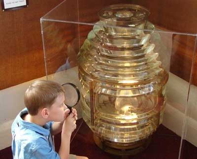 Arthur Nygard examines the lens up close. (Photo by Eric Nygard, courtesy of the HLWMM.) Back to the edition of: July 2009