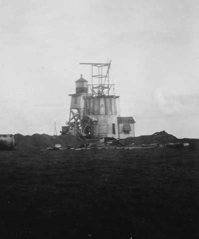 The third Kauhola Point Lighthouse under construction in 1932 with the old tower standing next to it. Back to the edition of: March 2010