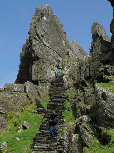 The walk down the 600 rocky steps (with no railing) from Skellig Michael Lighthouse is not for the faint of heart. We wonder how long it took to build the steps and how many people were involved in building them. Back to the edition of: March 2010