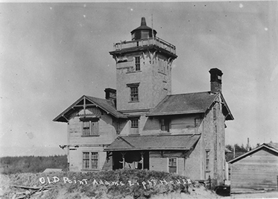 Someone was living in the abandoned Point Adams Lighthouse when this photo was taken in 1910. Some of the windows of the lighthouse are boarded up and the light is no longer in the tower, but, if you look closely, there are clothes hanging from a line on the front porch. (Photo courtesy U.S. Lighthouse Society.) Back to the edition of: Jul/Aug 2016