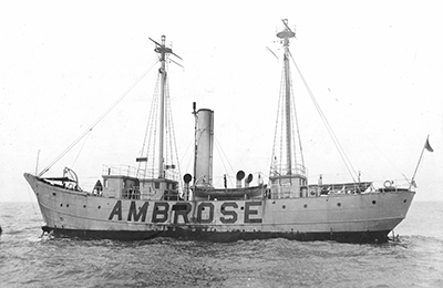 The Ambrose Lightship LV 87/WAL 512 as it appeared in March of 1921. Gustav A Lange was captain of the lightship from 1910 to 1932. Because lightships were never allowed to leave their positions, regardless of the weather conditions, lightship duty was considered the most dangerous duty in the old U.S. Lighthouse Service and later the Coast Guard, which took over the Lighthouse Service in 1939.