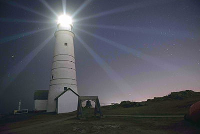 At dusk this past September 14th, in honor of the 300th Anniversary of Boston Lighthouse, the oldest light station in the United States, the light was briefly powered down and then symbolically relighted. (Photo by Petty Officer Andrew Barresi, USCG.) Back to the edition of: Nov/Dec 2016
