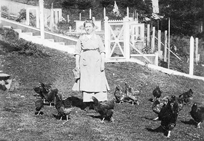 Keeper Robert Bay’s wife, Lillie, kept chickens at Heceta Head Lighthouse. There were other outbuildings at the light station, including a barn and a chicken coop. Horses were also kept to help haul supplies up from the beach. (Photo courtesy of Brian Bay.) Back to the edition of: Jan/Feb 2017