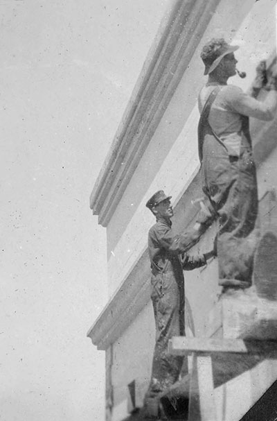 Walter Lawrence (l) and Orlo Hayward (r) are painting the lighthouse as part of one of the many maintenance chores at Tillamook Rock. (Photo courtesy of Brian Bay.) Back to the edition of: Jan/Feb 2017