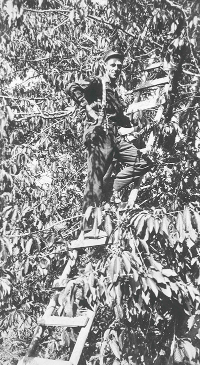 Walter Lawrence is up the ladder picking cherries while on leave from Tillamook, though he still has his lighthouse hat on. He labeled this photo “contented.” When the keepers visited Heceta Head Lighthouse on leave, they often went huckleberrying as well. (Photo courtesy of Brian Bay.) Back to the edition of: Jan/Feb 2017