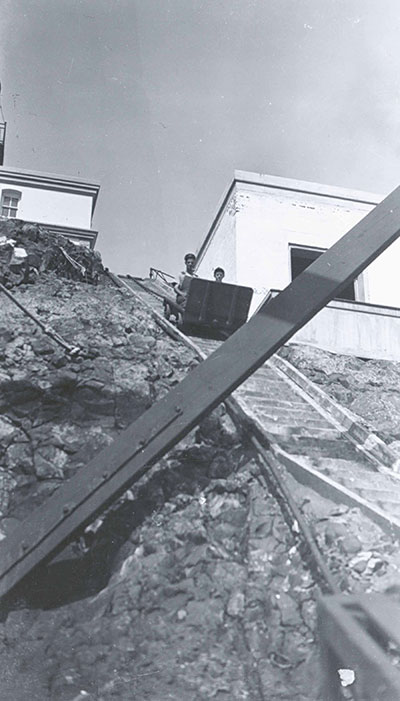 Walter Lawrence and Raymond Bay enjoy a ride in the service cart down the stairs to the loading dock at Tillamook Rock. They used to play “race car” with the cart on the deck surrounding the lighthouse, which they affectionately named “Broadway.” (Photo courtesy of Coast Guard Museum NW.) Back to the edition of: Jan/Feb 2017