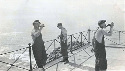 Keepers Orlo Hayward, Raymond Bay, and Howard Hansen (l–r) enjoy what appears to be a beer on Tillamook Rock together in 1920. Beer was forbidden at lighthouses, but many keepers still drank it and the Haywards even used to make it (and hide it when inspectors came as told in a great story in the Sep/Oct issue of Lighthouse Digest. (Photo courtesy of Jean Hayward Wilkinson.) Back to the edition of: Jan/Feb 2017