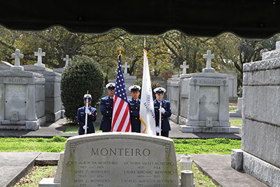Honor Guard YN2 Tia Goslee, FA Tyler Winton, YN3 Jomarc Dasalla, and SN William Postgate (l-r) present the colors to open the ceremony officially. Back to the edition of: May/Jun 2018