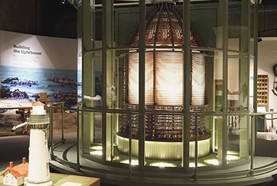 The focal point of the main gallery is the replica first order lens from the lighthouse that stands nine feet tall and flashes the Yaquina Head Lighthouse signature. There is also a two-foot lit model of the lighthouse in front of it. Back to the edition of: Jan/Feb 2020