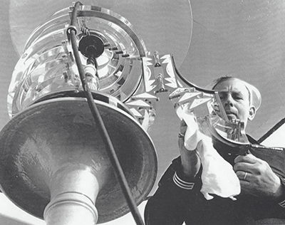Coast Guard lighthouse keeper Ralph Banks, who was the keeper at Maine’s Marshall Point Lighthouse from 1962 to 1963, is shown here cleaning the 5th order Fresnel lens in the lantern. This is the lens that mysteriously disappeared in the mid-1970s. (Photo courtesy Marshall Point Lighthouse and Museum.) Back to the edition of: Jan/Feb 2020