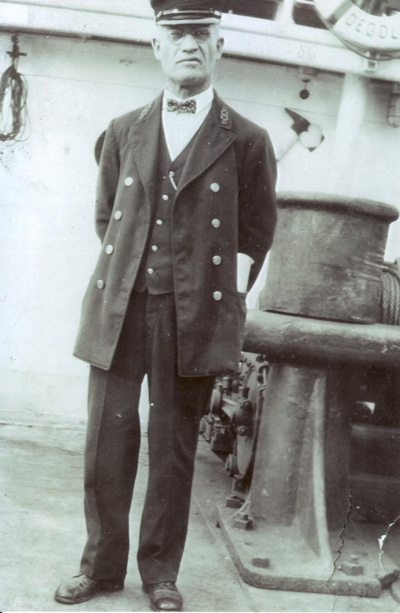 Lighthouse keeper George Codding onboard a vessel that appears to be named DeGolia or DeGolis. Back to the edition of: Jan/Feb 2011