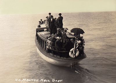 From 1904, John L. Paetschow (1882-1960) enjoyed his job running the mailboat and ferrying passengers between North Manitou Island and Leland, Michigan . . . until someone stole his boat. He could not afford another one, so he joined the Lighthouse Service in 1918, permanently this time, at North Manitou Island Light. The next year, he switched to Muskegon South Pierhead Lighthouse, and then transferred to Ludington North Breakwater Light in 1920 so he could serve again under his good friend, Frederick A. Samuelson, whom he had known for over 20 years. When Fred retired in 1937, John took over as head keeper at Ludington until 1941 when he then transferred to Wisconsin’s Manitowoc Breakwater Lighthouse for the last 12 years of his 35-year career until his mandatory retirement at age 70 on July 31, 1953. He passed away seven years later and is buried in the Lutheran Cemetery in Sutton’s Bay, Michigan. (Courtesy Leelanau Historical Society)