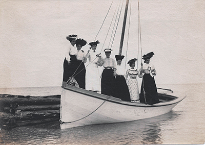 Gustie Samuelson (2nd from right) is shown along with her women friends standing rather precariously in a boat at Swenson’s Dock in 1905. It would be interesting to know what happened next and how many of those fine hats might have gotten wet that day. (Courtesy of Maribeth Schmock Runyan) Back to the edition of: Sep/Oct 2021