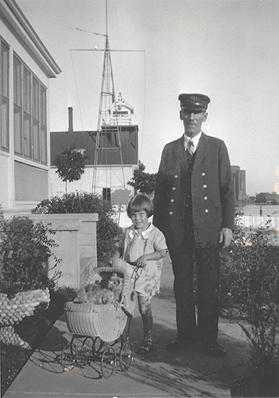 Fred Samuelson and his granddaughter, Shirley Meador, stand outside the keepers’ duplex at Ludington North Breakwater Lighthouse, c. 1933. (Courtesy of Maribeth Schmock Runyan) Back to the edition of: Sep/Oct 2021
