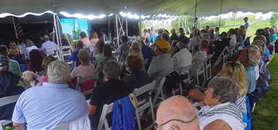 During the event, the crowd, speakers and the large-screen equipment stayed dry for the most part under the tents, though Hurricane Fred, also in attendance, eventually got everyone drenched at the end while boarding the boats back to shore. Photo by Debra Baldwin Back to the edition of: Nov/Dec 2021