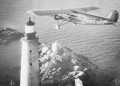 Samuel L. Bickford was also an early sponsor of the Flying Santa flights and flew with William Wincapaw on the 1933 flight. Bickford continued to sponsor the program for several years following, including this 1937 run over Graves Light in Massachusetts. He frequently employed Wincapaw to pilot him on business trips as well. (Courtesy Friends of Flying Santa) Back to the edition of: Jan/Feb 2022