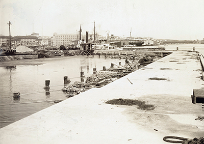 This photo, taken on January 30, 1924, shows the big pool formed on the left side behind the wharf bulkhead, where Scott Dillon’s friends fished for barracuda, and where Koos, the cat, later chased lizards into the mud from the dredged harbor.(National Archives) Back to the edition of: Jul/Aug 2022