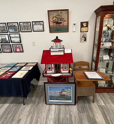 This model of the Great Shoals Lighthouse, which was built over 100 years ago, is on display at the Skipjack Heritage Museum in Chance, Maryland. The lighthouse was built in 1864 at the entrance to the Wicomico River near Wellington, Maryland. Its lantern housed a 5th order Fresnel lens. It was deactivated in 1966 and demolished shortly thereafter. Back to the edition of: Jul/Aug 2022