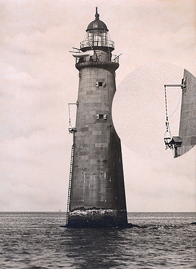 This fine photograph of Minot’s Ledge Lighthouse was taken by head keeper Milton H. Reamy and first published in the October edition of New England Magazine in 1896. Note the Longfellow Chair hanging next to the tower door. Captain Reamy’s photographic skills were noted in an 1893 newspaper article along with the following description of his admirable character: