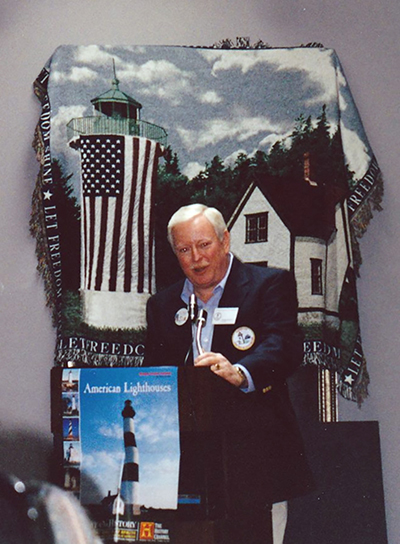 American Lighthouse Foundation president, Tim Harrison, speaks at the world premiere of the History Channel’s Save Our History: American Lighthouses film in 2002. The History Channel also donated $1000 to ALF at the event and the sales staff of Time Warner Cable of Maine donated nearly 5000 free 30-second TV commercials to ALF to help them in their restoration and preservation efforts. (Lighthouse Digest archives) Back to the edition of: Nov/Dec 2023