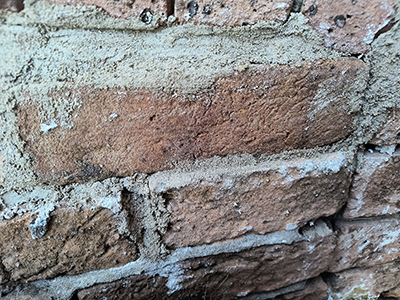 Shown is a close-up of the replacement brick where the original front door was. Back to the edition of: Nov/Dec 2023