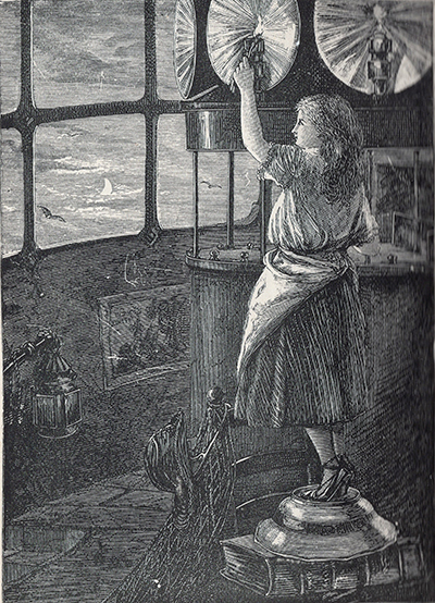 Mary standing on a chair, a basin and the Bible in order to reach the lamps. (Courtesy Watchers on the Longships illustration 1899 edition) Back to the edition of: Sep/Oct 2024