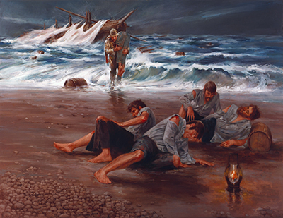 A conceptualization of Rasmus Midgett’s rescue of all 10 of the shipwreck victims aboard the barkentine Priscilla. (Courtesy U.S. Coast Guard) Back to the edition of: Sep/Oct 2024
