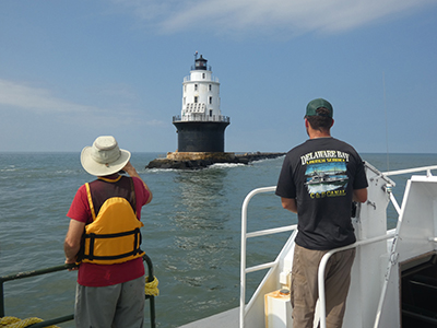 After a day of working at the Harbor of Refuge Light, Rick Cullin (left) and Delaware Bay Launch Service Caption Austin Mendez check out the lighthouse as they head back to shore. Back to the edition of: Nov/Dec 2024