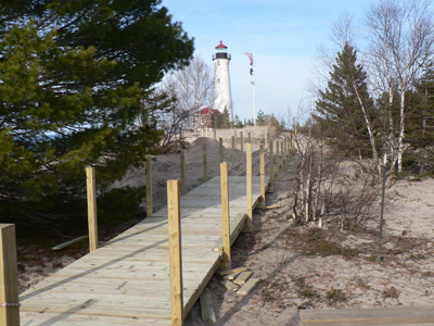 The new boardwalk at Crisp Point Lighthouse as it was under construction. Back to the edition of: Jul/Aug 2012