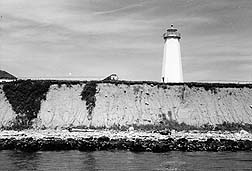 Faulkner's Island Lighthouse, Connecticut, showing how close to the edge of the bluff the structure is. Back to the edition of: January 1997