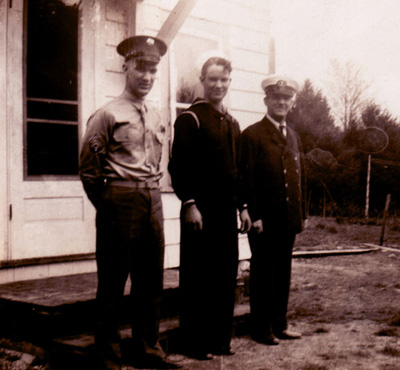 This was a proud moment for the Chandler family in 1943, as well as a rare opportunity for a family get-together during a time of war. Left to right: James Chandler in his army uniform, brother Bernard Chandler in his navy uniform, and their dad, lighthouse keeper Roscoe Chandler in his U.S. Lighthouse Service keepers uniform. (photo courtesy Bernard Chandler.) Back to the edition of: May/Jun 2014