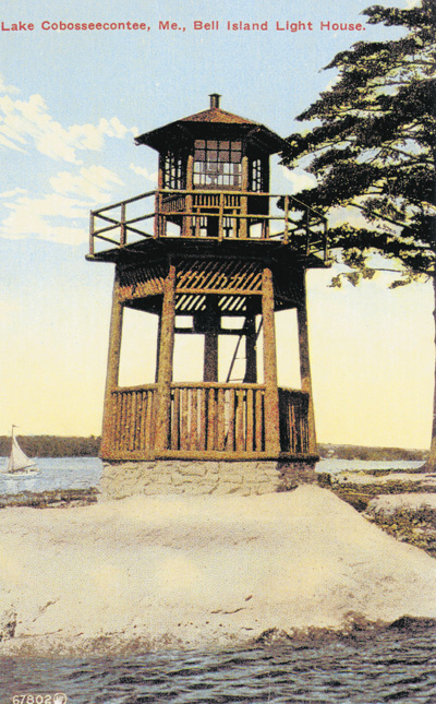 Belle (or Bell) Island Lighthouse, Lake Cobbosseecontee, Maine. This lighthouse stood from 1916 to 1938. Back to the edition of: June 2000