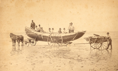 Famed life-saver Joshua James with his Massachusetts Humane Society Lifeboat crew from Hull, Mass. Note the Hunt line gun on the rear beach apparatus cart. Back to the edition of: Jan/Feb 2015