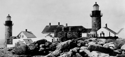 Matinicus Rock Lighthouse Station in the late 1800s. Look closely to the right and you’ll see at least seven people standing. (Lighthouse Digest archives.)