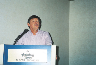 Ray Jones, the popular lighthouse personality and co-author of numerous lighthouse books, was on hand at the Great Lakes Lighthouse Festival to autograph his books. He and Bruce Roberts autographed a large number of their books for the attendees. Ray is also the co-author along with Tim Harrison of the book Lost Lighthouses and their newest book together, Endangered Lighthouses. Ray is shown here at the Saturday night Keepers dinner, as he was about to introduce the evening’s speaker, Bill Younger, founder of popular Harbour Lights lighthouse replicas.