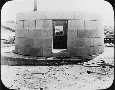 Assembled granite blocks for Graves Lighthouse at a stone quarry in Cape Ann, MA. Photograph courtesy of the Massachusetts Historical Society. Back to the edition of: February 2001
