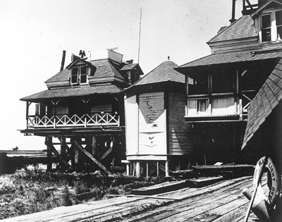 This close up view shows the damage to the lighthouse caused by the ammunition explosion that killed over 300 men and destroyed numerous ships. If you look closely you will see that the building between the two keepers’ houses is cracked in half. The lighthouse was discontinued shortly after that and sold at auction. Photograph courtesy of the Nautical Research Center.