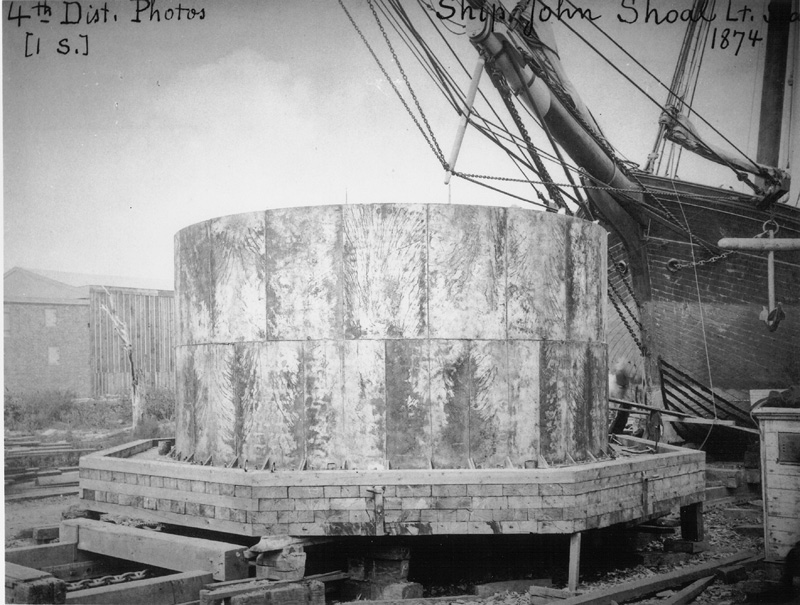 The base of Ship John Shoal Lighthouse being built on land in 1874. Photograph courtesy of the United States Coast Guard. Back to the edition of: June 2001