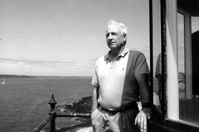 Ben Russell, current owner of Maine’s Hendricks Head Lighthouse on the lanter room walkway of the historic station. Back to the edition of: May 2002